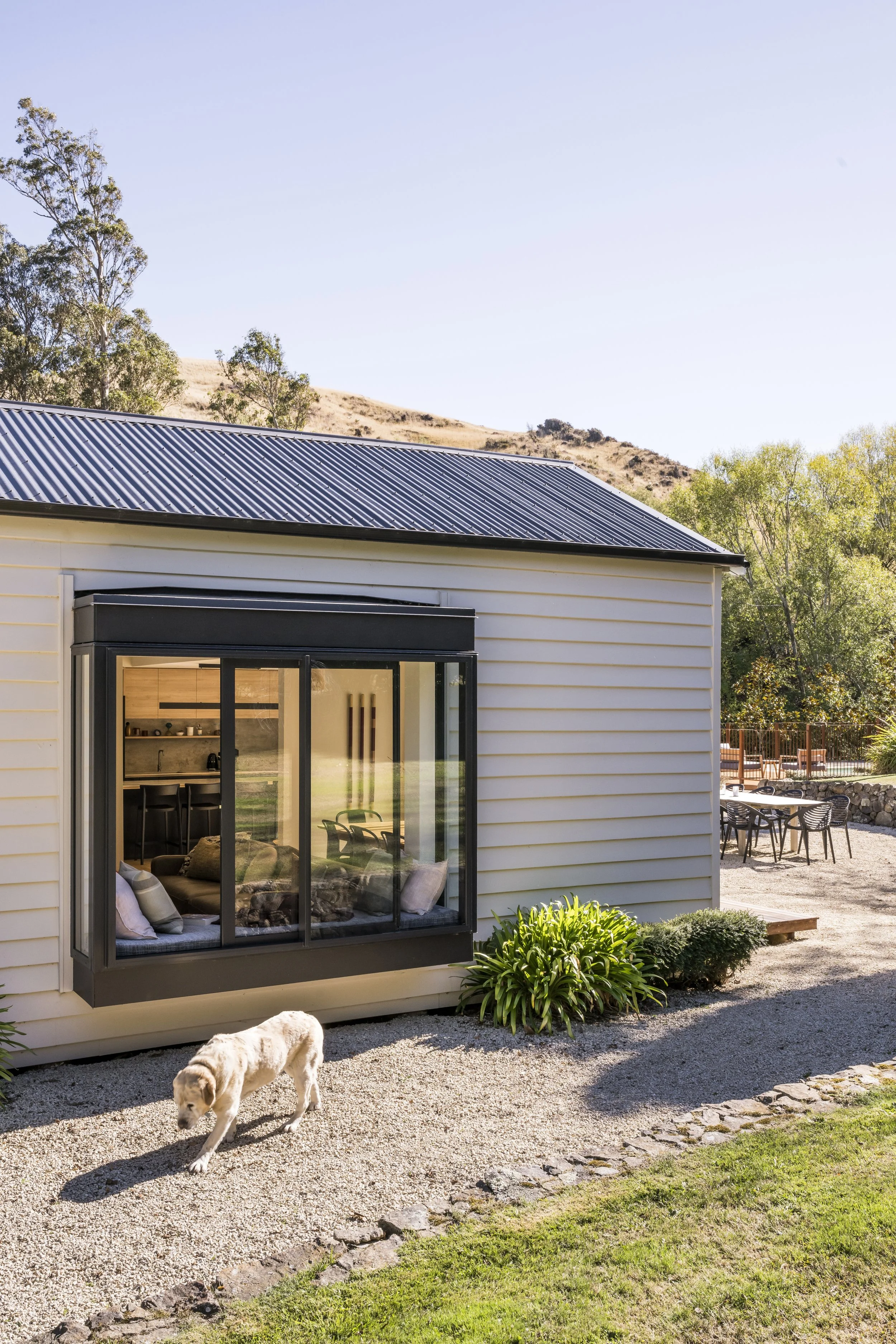 Another small yet key design element was the addition of a bay seat / window, that was strategically cantilevered to preserve the existing elevation’s lines. This feature not only enhances the exterior aesthetics but also provides a cozy nook for enjoying the panoramic views of Greta Valley and extensive established gardens.