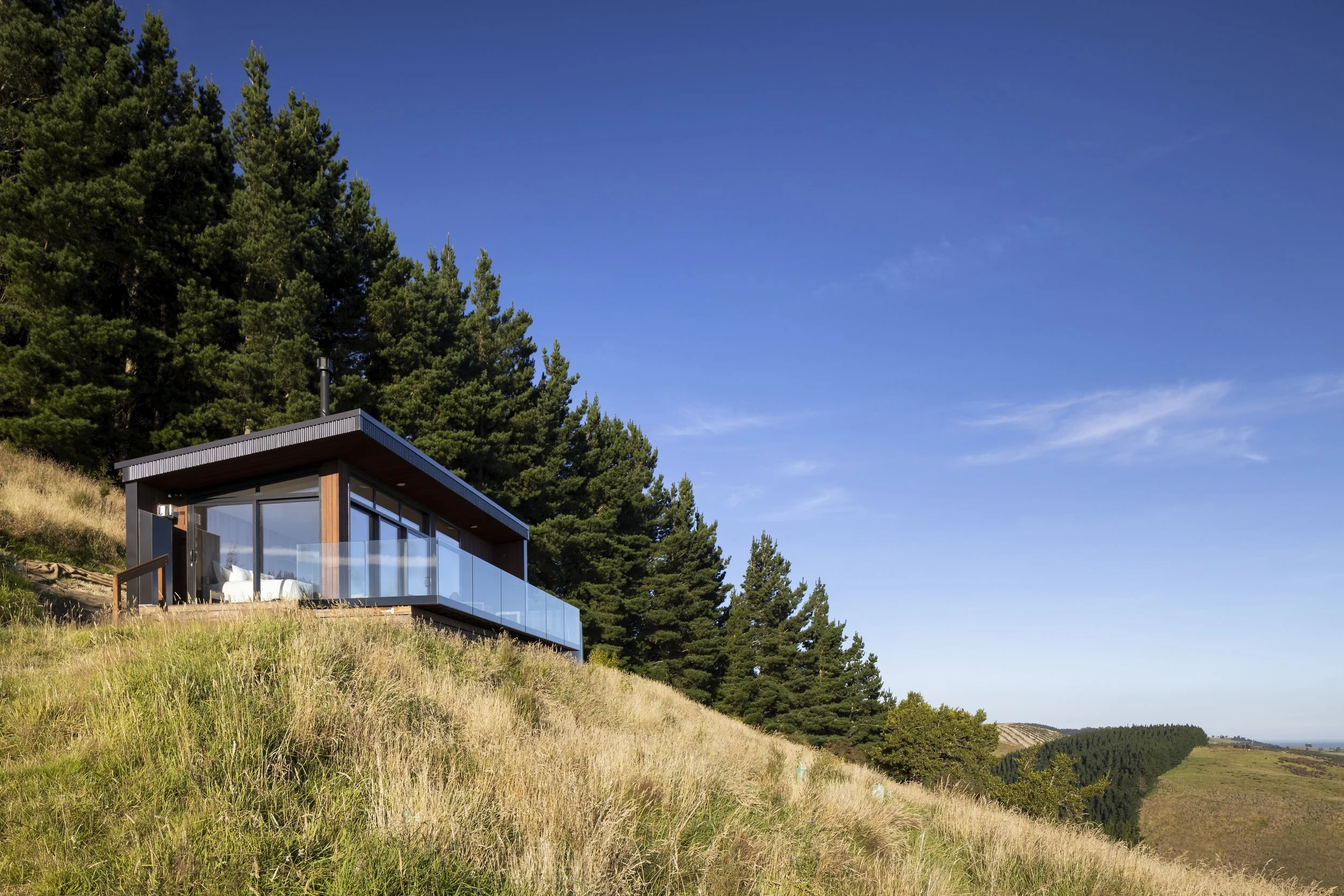 Situated within the North Canterbury Oxford hillside, the brief for this design was to be a celebratory response to its natural surroundings. The aim of the dwelling was not to detract from its landscape, but to merely be a simple use of space that was aimed at appreciating the setting and panoramic views.